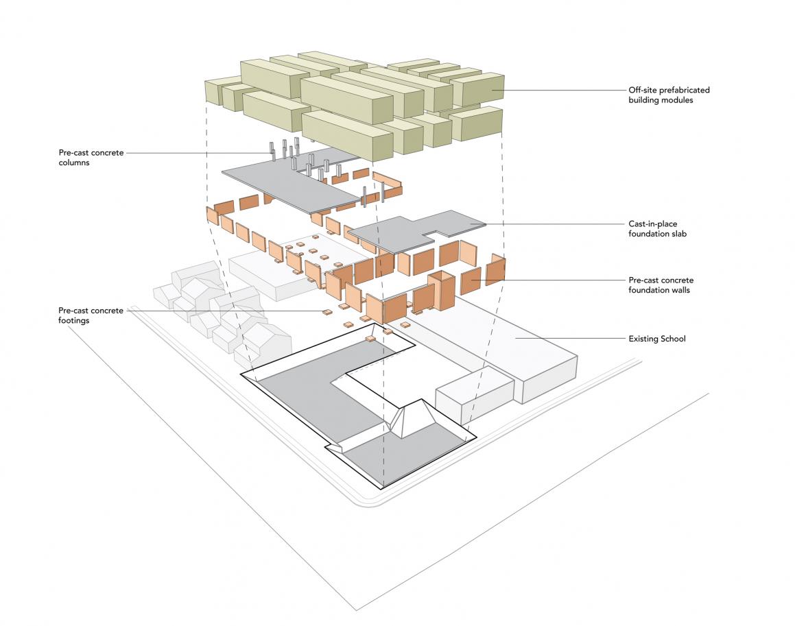 A escola, localizada no estado de New Jersey, demorou apenas 263 dias para ficar pronta, ou seja, menos de um ano. Foi idealizada em um sistema modular híbrido de aço e madeira. Um dos destaques da obra é a criação de um pátio central, onde as crianças podem brincar seguramente, pois são facilmente monitoradas a partir dos corredores e escritórios do corpo docente.